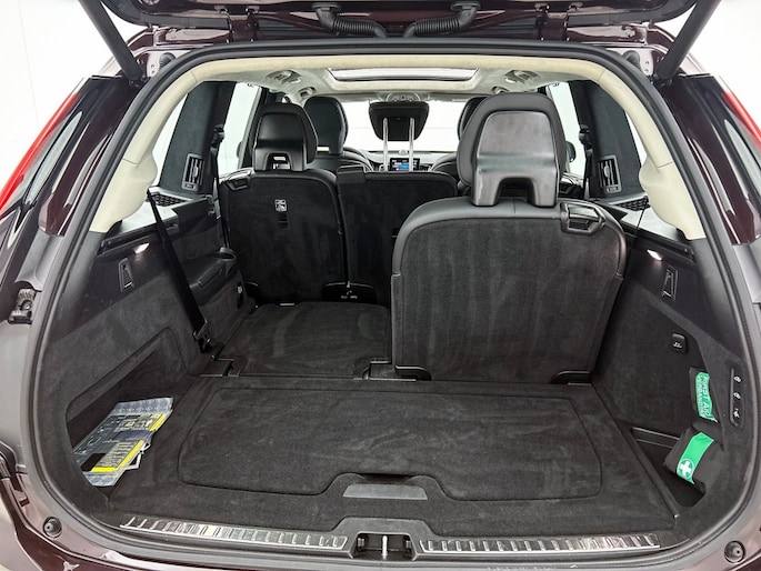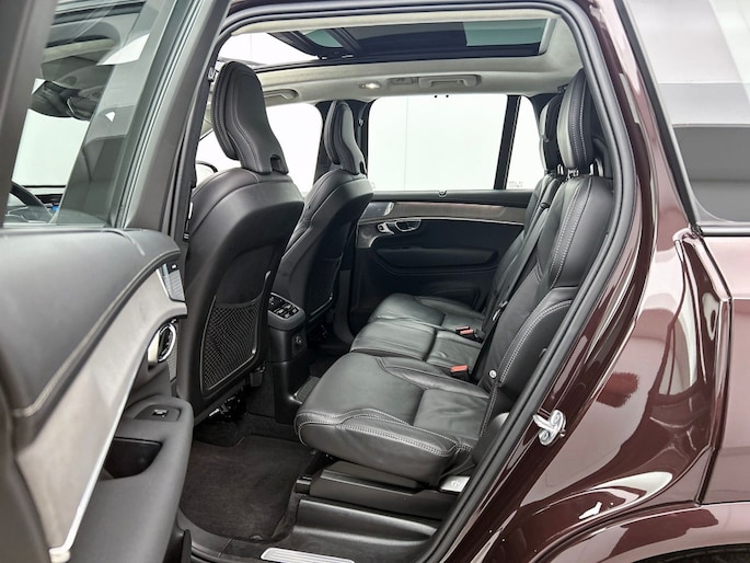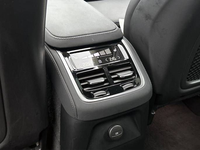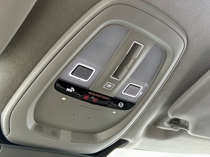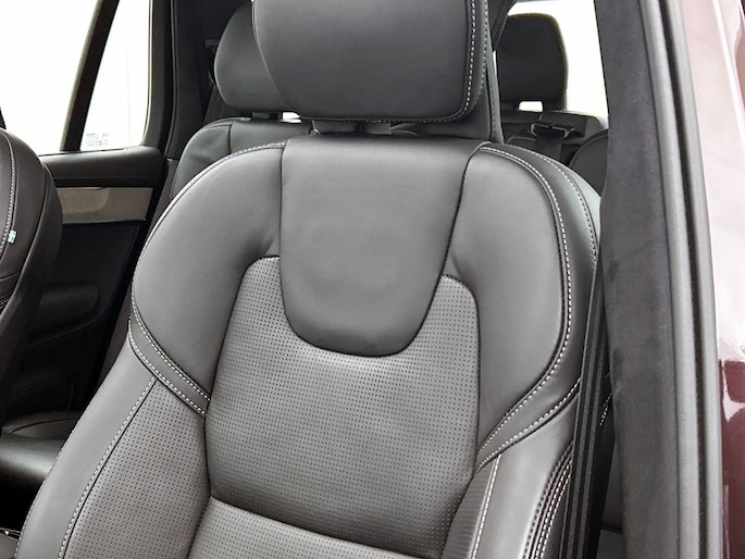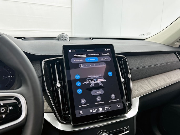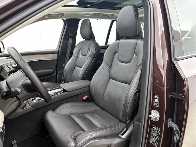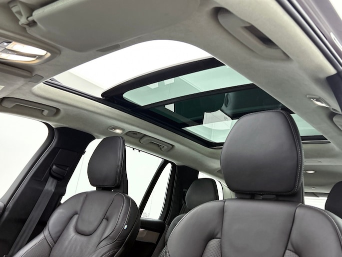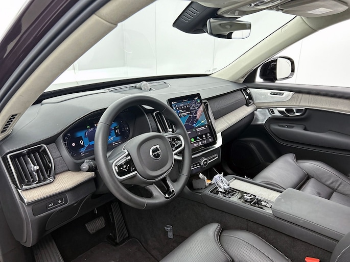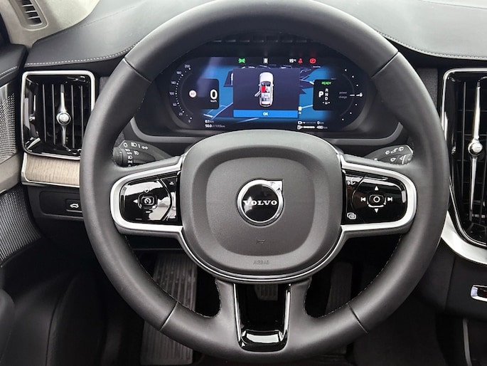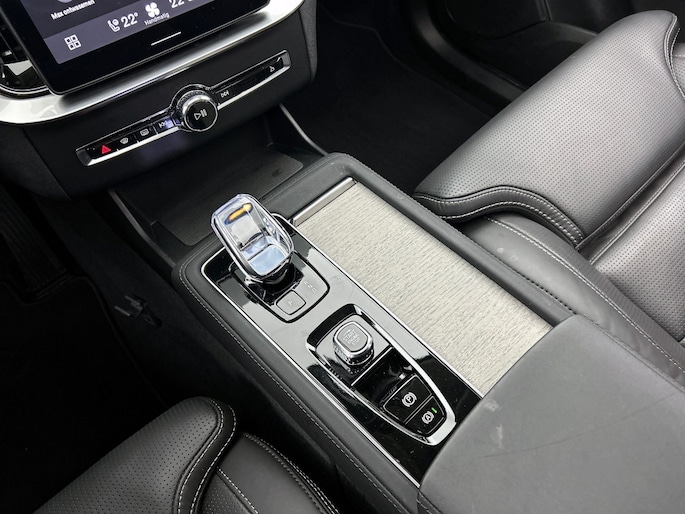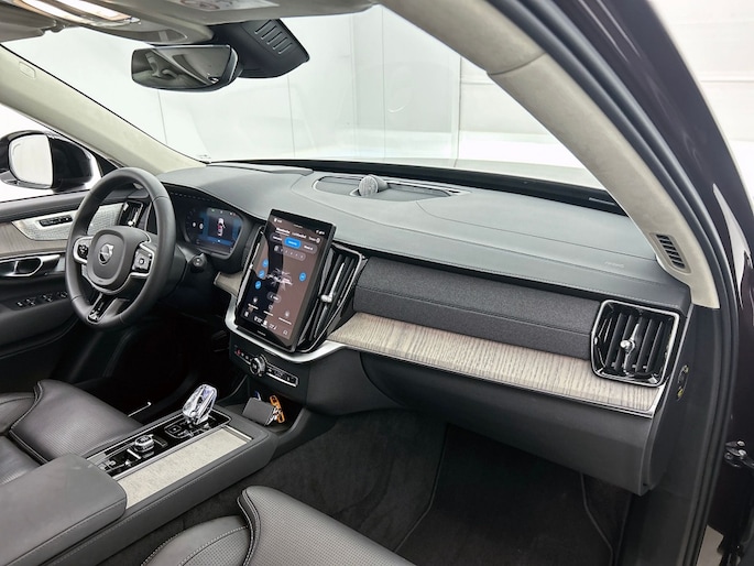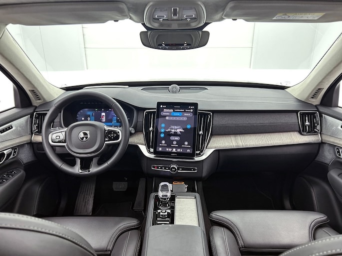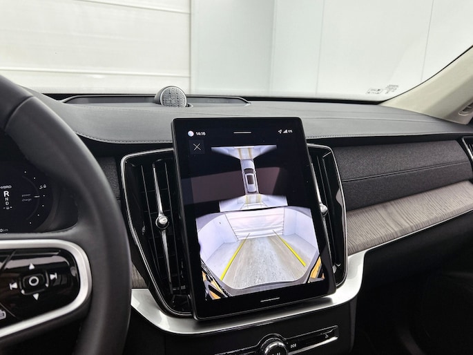 Het front van de auto is voorzien van een stoere grille met het Iron Mark Dark Design, wat de Volvo XC90 Ultra Dark Recharge Plug-In Hybrid AWD een krachtige en moderne uitstraling geeft. Met het rijassistent-systeem Grootlichtassistent geniet je van optimaal zicht op de weg, ook in het donker. Bovendien beschikt deze auto over het rijassistent-pakket Driver Assistance, wat zorgt voor extra veiligheid en comfort tijdens het rijden.