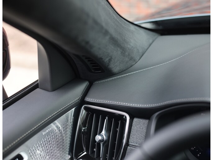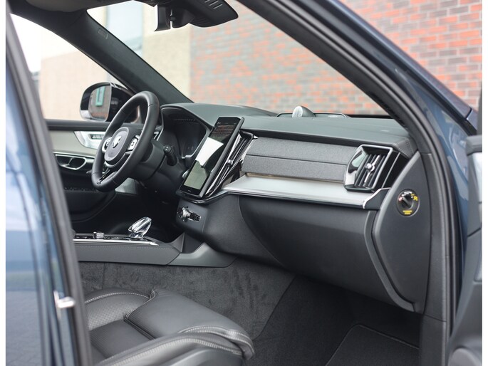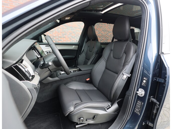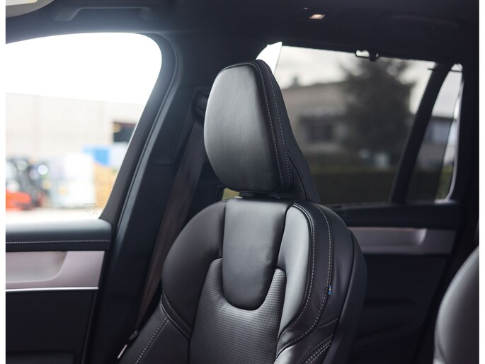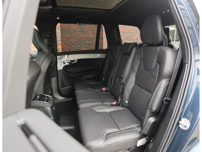 In het interieur is nergens op bespaart. Hier vinden we zwart lederen zetels, voorzien van verwarming, ventilatie én massagefuncties. Ook de passagiers op de tweede zitrij genieten van stoelverwarming. Zelfs op de derde zitrij is het goed vertoeven, de XC90 is namelijk een zeer ruime auto. Als Executive uitvoering heeft het interieur een zeer exclusieve ambiance gekregen met onder andere zwarte Alcantara hemelbekleding, lederen dashboard en aluminium interieurlijsten.