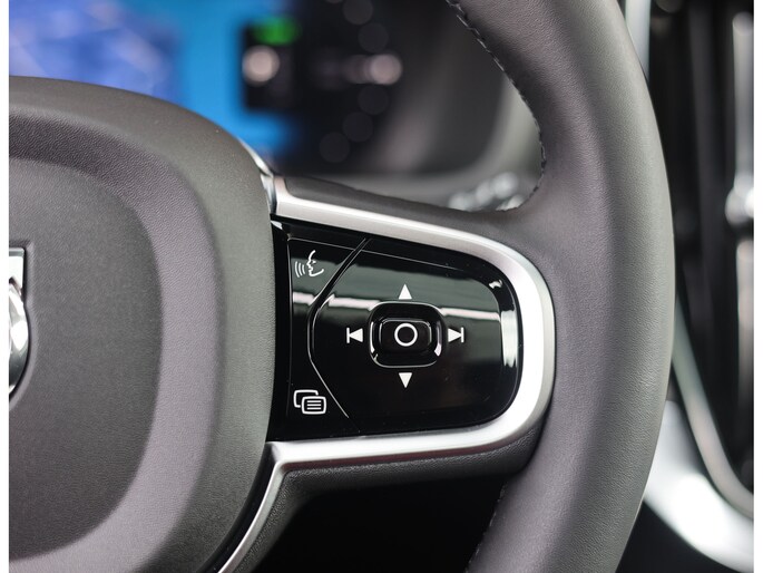 Dit exemplaar is uitgevoerd in Denim Blue metallic, wat prachtig contrast biedt met alle zwarte accenten van de Black Edition. Zo zijn de grille, de dakrails en alle logo’s in hoogglans zwart uitgevoerd waardoor de Volvo een extra stoere uitstraling krijgt.