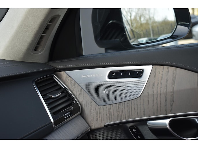 Geavanceerde techniek, waarbij een verbrandingsmotor samenwerkt met een elektromotor, zorgt dat deze auto geweldige prestaties neerzet en toch zuinig is met brandstof. Het lederen interieur valt meteen op, evenals de hoeveelheid licht die binnenstroomt via het elektrisch bediende glazen panoramadak. Maar kijk nog even verder en u ziet meteen de derde zitrij (of een reusachtige ruimte voor bagage en boodschappen). De elektrisch bediende achterklep gaat handsfree open en dicht. Wat een gemak! Koud of niet, de stoelverwarming met massagefunctie, stuurverwarming en verwarmbare achterbank maken elke rit comfortabel. Zit u goed? De stoelen zijn eenvoudig instelbaar dankzij de elektrische bediening met geheugen. Lekker hoor, die luchtvering! Elke hobbel en oneffenheid van het wegdek wordt compleet weggepoetst. En dankzij de comfortstoelen wordt het alleen maar gerieflijker. De koplampen zijn voorzien van matrix LED-verlichting waarmee u aanzienlijk verder kan kijken in het donker. Het systeem past zelf de lichtstraal aan op het moment tegenliggers verblind kunnen worden. Verder is de Volvo uitgerust met: 21 inch lichtmetalen velgen, extra getint glas en in delen neerklapbare achterbank.