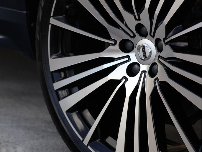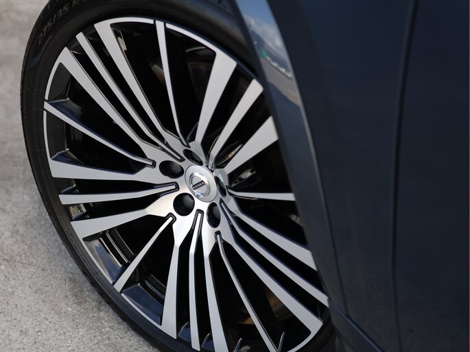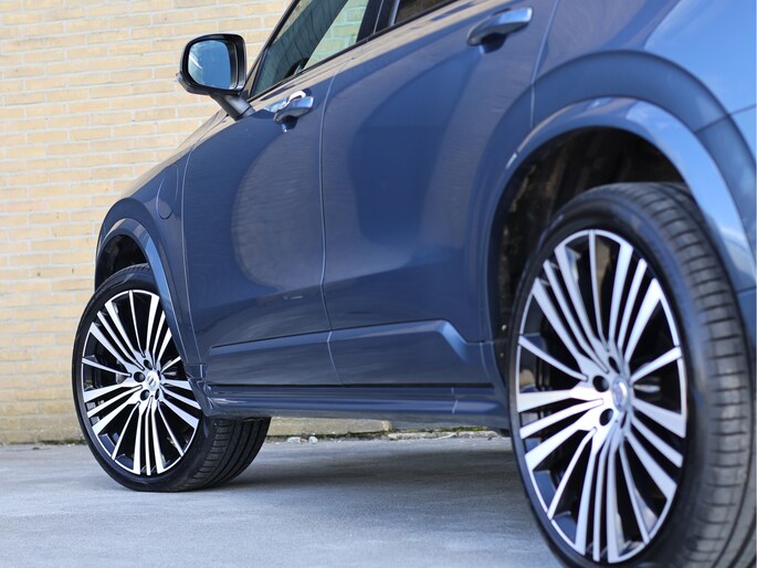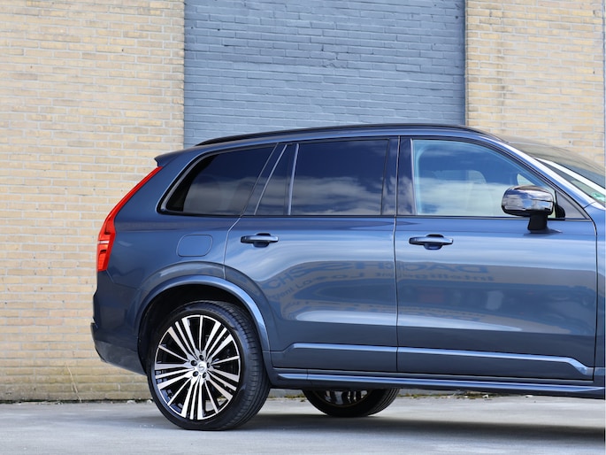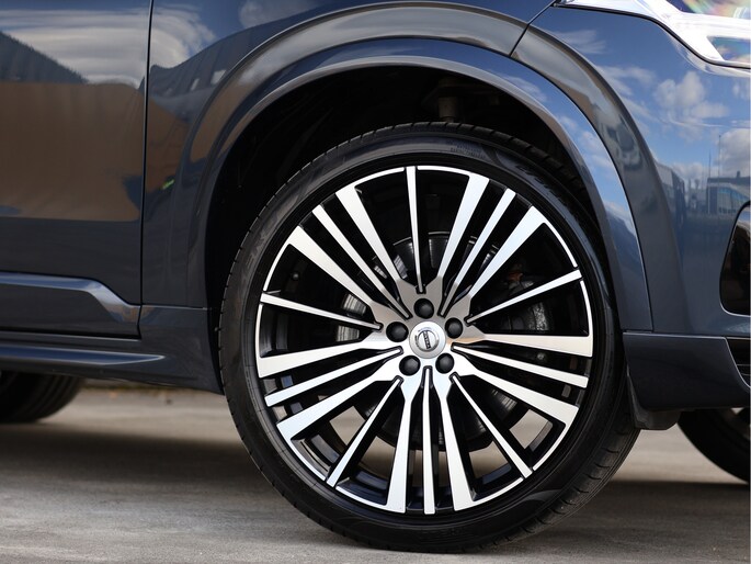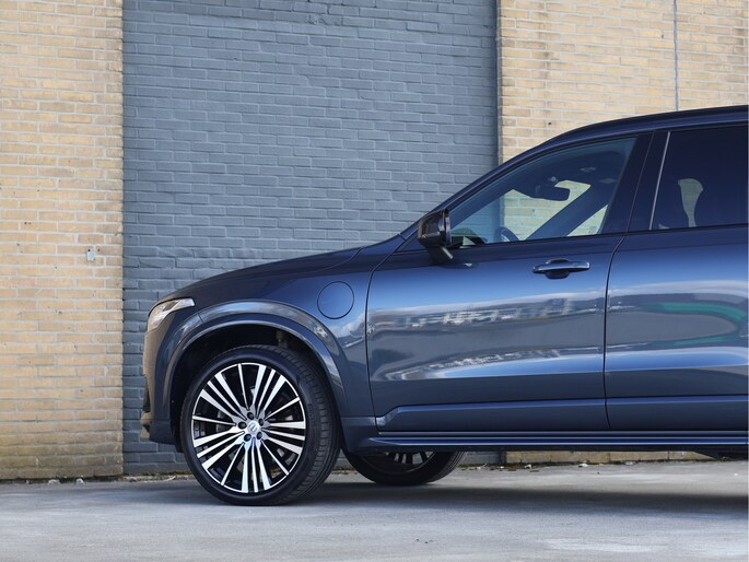 Maar waar deze auto écht het verschil maakt, is zijn uitstraling. De R-Design uitvoering is er voor liefhebbers die nét wat meer zoeken. Strakker, sportiever en met oog voor detail. Het Denim Blue metallic lakwerk geeft de auto een chique basis, terwijl de volledig zwart uitgevoerde accenten – van grille tot raamlijsten en zelfs de VOLVO letters achterop – zorgen voor een krachtige, bijna ingetogen agressieve look. De imposante 22 inch 20-spaaks Black Diamond Cut velgen maken het geheel af. Dit is zo’n auto waar u nog een keer naar omkijkt als u hem parkeert.