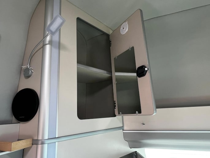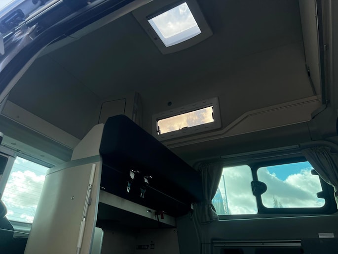 De camper is voorbereid op off-grid kamperen met een zonnepaneel aansluiting; na plaatsing van een paneel ben je volledig zelfstandig. Verder is hij uitgerust met bandenspanningssensoren voor extra veiligheid onderweg.