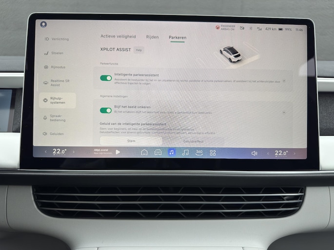 Alle functies voor een veilige en zuinige rit worden overzichtelijk weergegeven op het digitale dashboard. De 360 graden camera wordt mogelijk gemaakt door vier camera's die tezamen werken om zo een uitgebreid zicht te bieden, wat van grote waarde is bij het navigeren door smalle straatjes en parkeerplekken. Adaptive cruise control is veilig en comfortabel. De snelheidsregelaar houdt automatisch afstand tot het voertuig dat voor u rijdt. Als belangrijke extra geldt zonder twijfel het high performance audiosysteem met topkwaliteit geluidsweergave. Kruisingen en afslagen worden een stuk veiliger door de kruisend verkeer detectie. Deze XPENG is voorzien van dashboard met spraakbediening, navigatiesysteem, electronic climate control en DAB ontvangst.