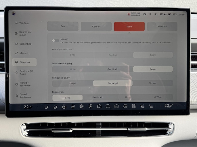 Het rijden met deze XPENG wordt nog meer ontspannen dankzij de innovatieve technieken die onderweg over uw veiligheid waken. Bij de veiligheidssystemen van deze XPENG hoort ook de verkeersbord-detectie. Die leest tijdens het rijden als het ware met u mee en attendeert u op de significante verkeersborden langs en boven de weg. Het Lane-keeping systeem doet precies wat nodig is: waarschuwen en corrigeren bij onbedoelde overschrijding van de rijstrooklijnen. Forward collision warning waarschuwt voor een kop-staart botsing. De veiligheid van deze auto wordt verder verhoogd door dodehoekdetectie, hill hold functie, vermoeidheidsherkenning, autonoom remsysteem en bandenspanningcontrolesysteem.