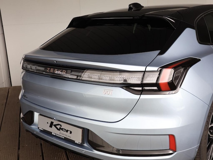De Zeekr 001 vertegenwoordigt de nieuwe generatie auto's en verenigt elektrische kwaliteit en duurzaamheid met elkaar. U hoort slechts het lichte gezoem van de elektromotor tijdens het rijden. Naast het verwarmbare stuurwiel en de stoelverwarming, benadrukt de massagefunctie op de voorstoelen dat we hier te maken hebben met een regelrechte verwenauto. U past de stoelen moeiteloos aan, ze zijn elektrisch in te stellen en hebben bovendien een geheugen. Een handige voorziening op deze auto is de elektrische achterklep die u op afstand kunt openen. Geniet van de lichtinval en het uitzicht van het grote glazen panoramadak. Perfect zicht bij nacht en slecht weer? Dat leveren de koplampen met matrix LED-verlichting. Bij de zeer complete uitrusting van deze auto behoren ook 22 inch lichtmetalen velgen, trailer assistent, dakspoiler, extra getint glas, in delen neerklapbare achterbank en LED-achterlichten.