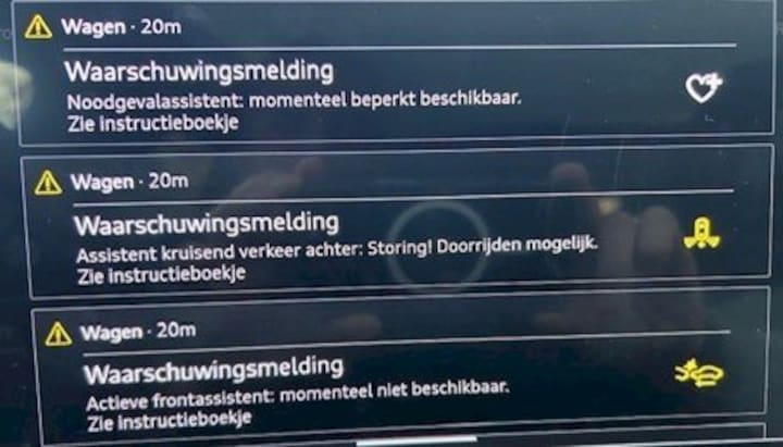 Gedurende 6 dagen heb ik redelijk probleemloos in de Audi A6 e-tron als leenauto kunnen rijden. Maar toen liep deze compleet vast tijdens het rijden. Ondermeer de volgende meldingen: