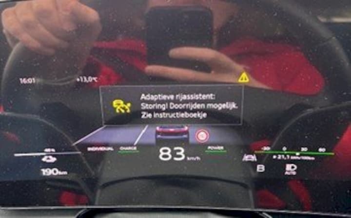 - Tijdens het rijden vliegt de “Adaptieve rijassistent” in storing.