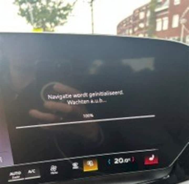 - Navigatiesysteem liep ook meteen weer vast. Nu niet met een zwart scherm, maar met de blijvende mededeling “navigatie wordt geïnitialiseerd, wachten aub”.