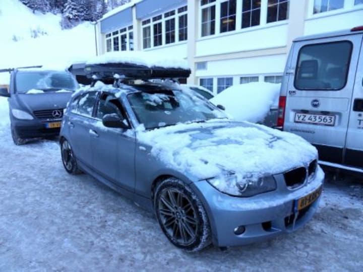 Zojuist weer uit de Alpen gekomen (Axamer Lizum) met een overvolle auto. Dakkoffer is onontbeerlijk in zo'n situatie. In mijn eentje kan ik nog wel de achterbank omklappen, maar met meerdere passagiers kan dat niet en blijkt toch wel hoe klein de auto is.