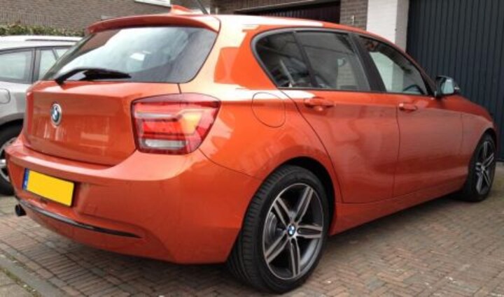 3 Weken geleden kon ik mijn 118D ophalen in Valencia Orange in High Executive met leer, schuifdak en zwarte hemel.