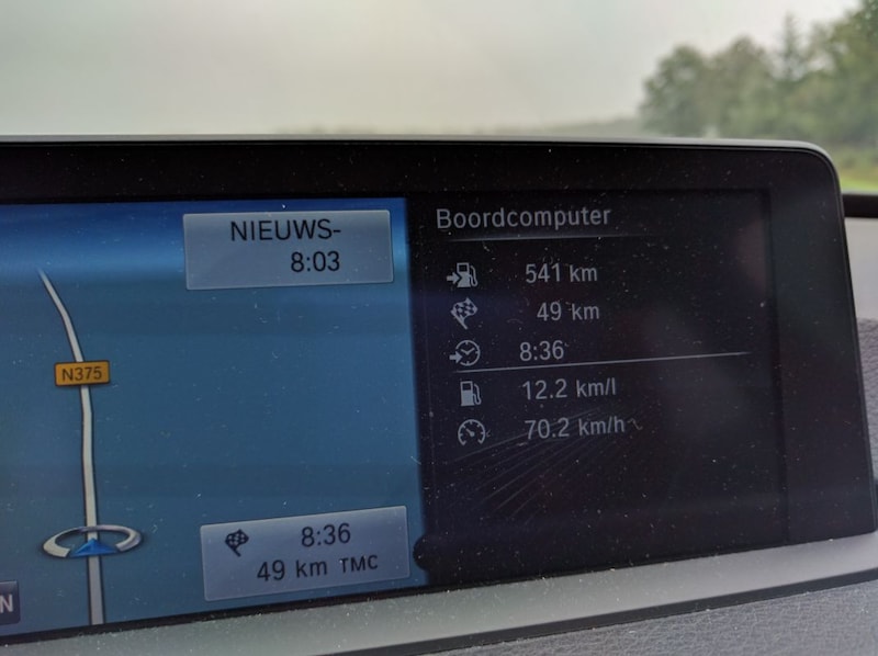 Brandstofverbruik: Ai, dat valt tegen na de 320d. Van diesel naar benzine en van 1:18 naar 1:12,5. Dat is het maximale wat ik er uit kan halen, waarbij ik voor 85% op snelweg en 100 km-weg rijd. In Eco Pro zonder airco en zo veel mogelijk zonder vermijdbare elektriciteitsverbruikers.