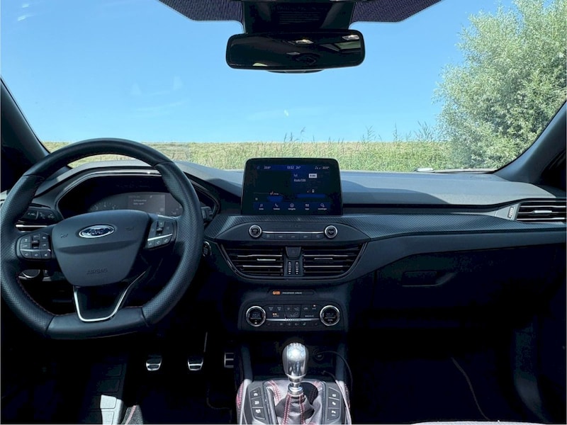 Het interieur is één van de redenen dat ik de Focus hoog op mijn lijstje kwam te staan. Niet bepaald door de geweldige bouwkwaliteit of materiaalgebruik. Dit is voor mij prima en gewoon netjes maar zeker niet de top in het segment. De bouwkwaliteit komt enerzijds goed over want de auto heeft na ruim 100dkm geen vreemde piepjes of kraakjes, maar aan de andere kant kun je met weinig moeite de hele middenconsole heen en weer bewegen. De layout maakt dit voor mij een fijn interieur. Ondanks dat ik vrij jong ben en best handig met smartphones etc. vind ik het in een auto heel fijn om dingen te bedienen met knoppen i.p.v. Scherm. Voor de meest gebruikte zaken heeft de Focus namelijk fysieke knoppen en dit maakt bedienen van klimaat, muziek etc. erg fijn tijdens het rijden. De knoppen op het stuur zijn er vrij veel maar logisch geordend. De opbouw maakt dat de meeste mensen waarschijnlijk snel hun weg zullen vinden in de bediening.