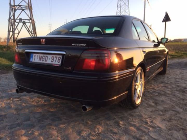 De Accord van deze generatie heb ik altijd een sportief /elegante verschijning gevonden. In Type R-uitvoering zorgen de bescheiden body-kit, de 17" Speedline-velgen, de Xenon-koplampen, de dubbele uitlaat en de sportophanging voor een coherent, sportief uiterlijk. De massieve achterspoiler was indertijd een zogenaamde "delete option": indien gewenst door de koper werd deze blikvanger dus niet gemonteerd op de productielijn. Ik vind hem zonder achtervleugel een stuk minder opzichtig en het verhoogt het sleeper-gehalte. De kleur "Pirates Black" is feitelijk een mooie auberginekleur die volledig tot zijn recht komt bij zonneschijn (bij bewolkt weer lijkt het eerder zwart).