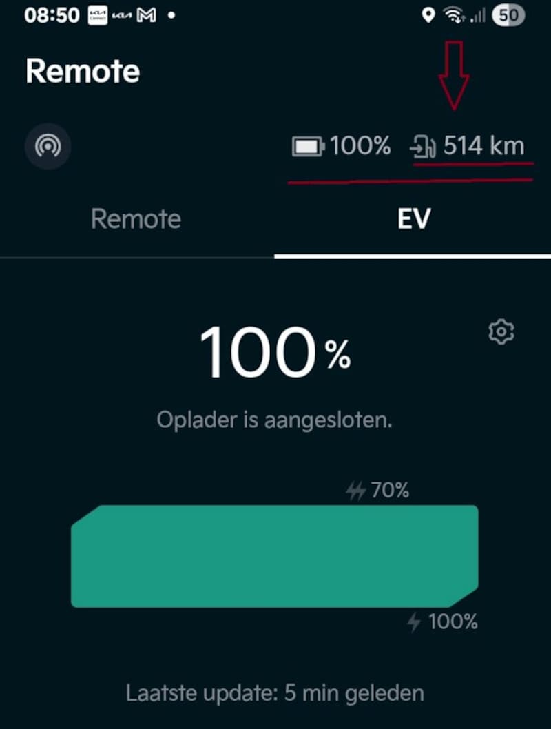 Volgens de Kia handleiding moet je de accu ook 2 keer per maand tot 100% opladen. De laatste keer tot 100% vol gaf toen een range van 484km aan (2 maart jl.) en dat is meer dan de WLTP-opgave van 455km.