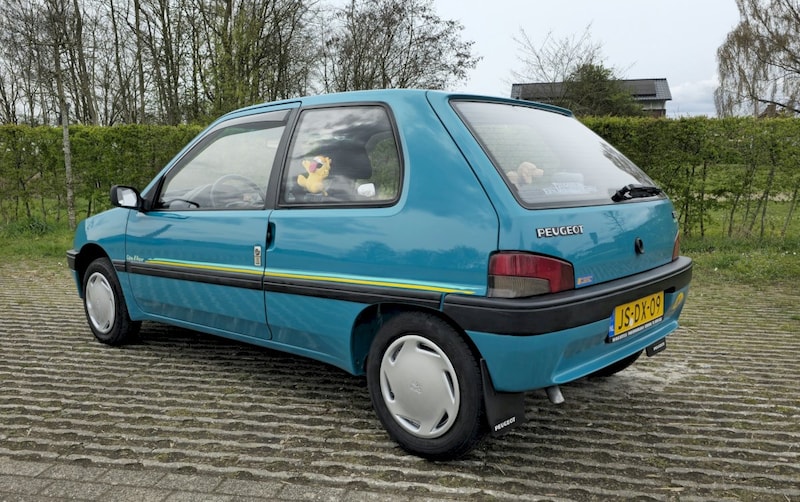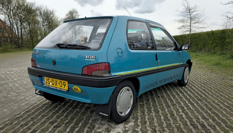 De zoektocht heeft wel even geduurd, want zoveel worden er niet meer aangeboden, en als ze op internet staan, zit er werk aan. Zoals elke jaren negentig auto, is blanke lak meestal een issue, want die raakt los op de vlakke delen. Ook zijn de dorpels achter en de binnenste wielkasten vaak slachtoffer van roest. Na meerdere bezichtigd te hebben, viel mijn oog op een 106 die op MP stond, met een wel heel bijzonder ogende kleur. Lekker fris, zomers en tijdens de looptijd van 1991-1995 zeer beperkt geleverd. Blue Bermude. Bij bezichtiging bleek dat helaas ook hier de schrale verweerde lak op het dak, een beetje op de motorkap en achterklep bovenkant, aanwezig was. Of de lak nu metallic is of effen, dat maakt bij dit proces helaas niet uit. Verder wat parkeer dutsen in de deuren, maar vrijwel geen schaven op de bumpers.