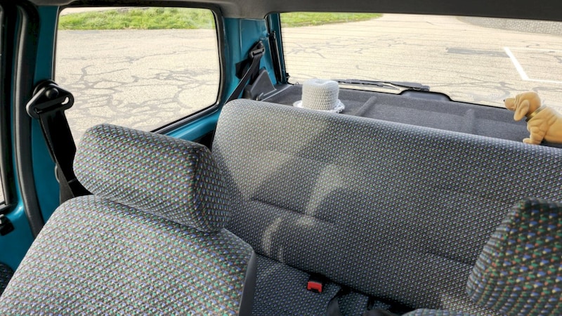 De auto is 25 jaar bij zijn 2e eigenaar geweest, vanwaar de aankoop bon getuigen kan. De auto is onderhouden en zelfs de bestuurders stoel, die toch geleden heeft in die tijd, is opnieuw bekleed geweest. Zij het in een ander stofje. De rest van het interieur is nog in een prima staat. De bekleding is verder heel, met hier en daar een haaltje of een vlek.