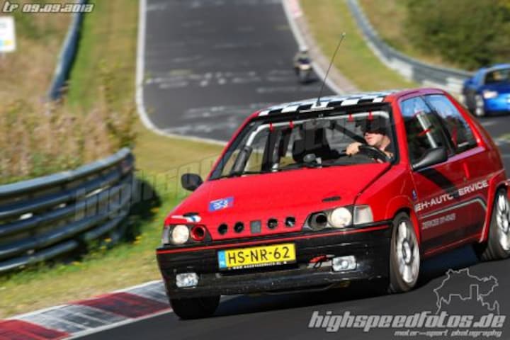 De 405 is verkocht en een Peugeot 106 Rallye staat voor de deur. Binnen 2 weken na het Ringweekend al aangeschaft). Er zijn nog heel veel plannen mee. Zo moeten de remmen worden veranderd, een rolkooi ingebouwd en nog veel meer zaken. Nu is hij nog standaard. Maar zelfs dat gaat uitstekend. De 1.3 motor heeft pit en de versnellingsbak met korte overbrengingen schakelt prima. Een top van ruim 190 km/u is mogelijk (geprobeerd in Duitsland op de A3). Ik ben heel erg blij met deze auto. En er gaat nog veel meer komen. Zo extreem als die Rallye van Edgar gaat hij niet worden, want dat zou nog weleens fataal kunnen aflopen. Helemaal toen Edgar me vertelde dat de auto op de Ring niet helemaal in orde was, en zijn vermogen niet volledig eruit kwam! En het was al zo'n monster! Nou Edgar, dan wil ik nóg een rondje! Maar dan wel op de bijrijdersstoel, want achter het stuur is gewoon onverstandig als je de auto niet goed kent.
