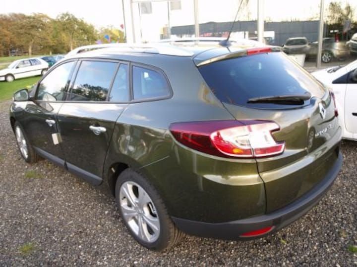 Juli 2009 mocht ik een nieuwe leaseauto uitzoeken. Na een brede orientatie is de keuze gevallen op de Renault Megane Estate 1.5dci (110pk) Dynamique in kleur Vert Olivette (op deze exlusieve kleur heb ik al veel positieve reacties gehad). Extra opties op de al rijke basis uitrusting (want op de Dynamique zit al ESP, ASR, regen- en lichtsensor, keyless entry en start, mp3, armsteun, gescheiden climate control, mistlampen voor etc): zwart lederen bekleding, pack business (tomtom navi en betere audio), panoramadak, 17inch lichtmetaal, privacy glas, electrische handrem, afneembare trekhaak en reservewiel (ipv spuitbus). Al met al heeeeel veel luxe voor iets meer dan 30.000 euro.