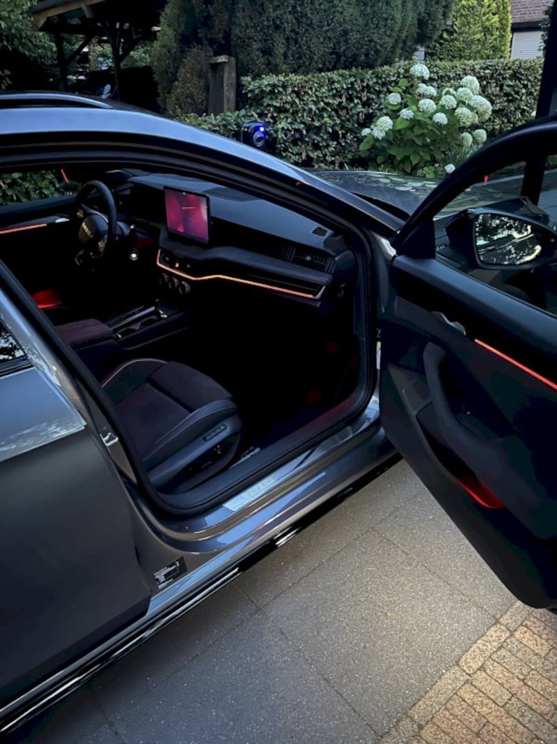 Deze review gaat over de Skoda Superb Combi Sportline Business PHEV (204 pk), die ik via mijn werkgever lease. De auto is standaard al rijk uitgerust met onder andere elektrische stoelen met massagefunctie, gelaagd glas, adaptive cruise control en stoelverwarming. Daarbovenop heb ik nog gekozen voor onder andere het Canton soundsystem, Dynamic Chassis Control, head-up display, panoramadak, wegklapbare trekhaak en het Winterpakket. De fiscale waarde komt net boven de €55.000 uit — praktisch full option dus.