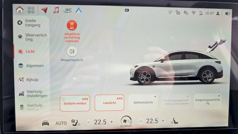• 22kW AC Laden: De auto heeft standaard een 22kW boordlader. Tijdens het boodschappen doen laad je in een uurtje van 60% naar 90%. Dit scheelt dure snellaad-sessies, zeker op vakantie.
