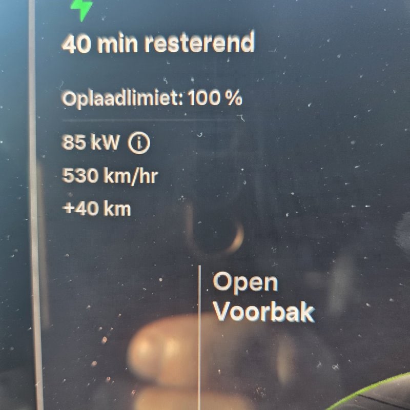 Nog even inzake het laden....na voorverwarmen en 30 km rijden piekt de laadsnelheid op 83 kw. Hij had nog 10 km lading...nu opgeladen tm 245 km en nog 25 minuten resterend tot aan de 381 km...foei foei wat langzaam