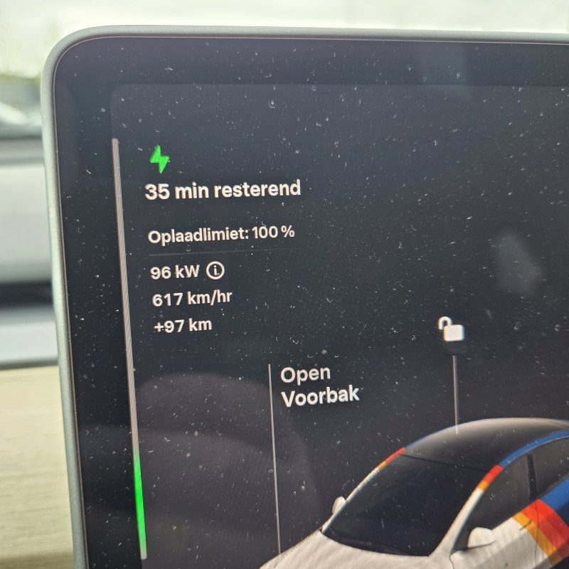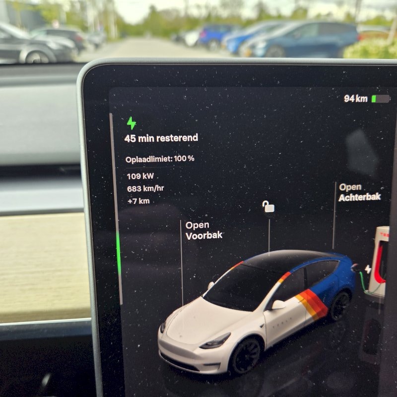 Weer een paar maand verder. De auto vertoond wel vaker dat het beeldscherm zo uitvalt. Vaak is dit na het starten. De enige oplossing is om decsuto weer opslot te doen en tot tien tellen en het dan weer opnieuw proberen. De auto mag dit jaar weer ingeruild worden voor een nieuwe auto. Ik wil geen Tesla meer, dan ben ik ook van de regelmaat van hakenkruizen op de auto af. Ik blijf wel electrisch rijden waarbij de voorkeur van sneller laden een belangrijke optie is. De Tesla start snel met laden maar dat vlakt snel af naar 100kw. Niet een snelle lader dus.