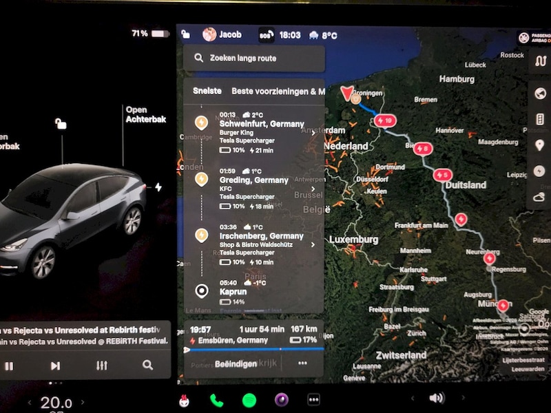 Zomer vakantie's gaan de langere afstanden een stuk beter ca 1400 Km 4x laadstops. De superchargers zijn goedkoop, betrouwbaar en nog nooit ergens hoeven wachten om op te laden.