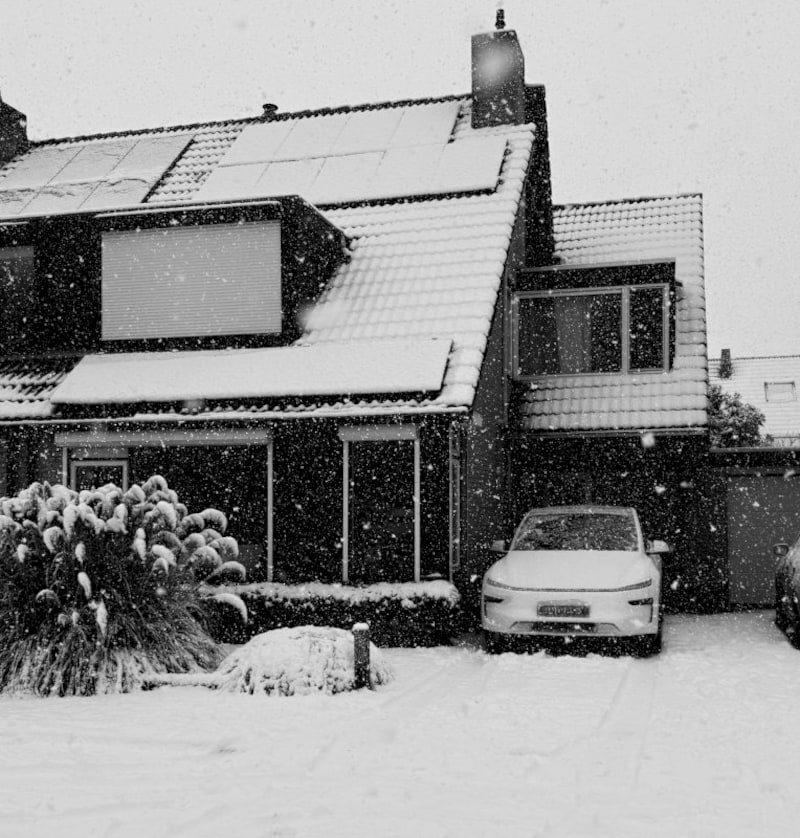 Dat is dus ruim 450 km range in winterse omstandigheden. Dat is gewoon… bizar goed. In mildere winterdagen zit 500+ km er serieus in. Voor een AWD SUV op winterbanden? Echt knap.