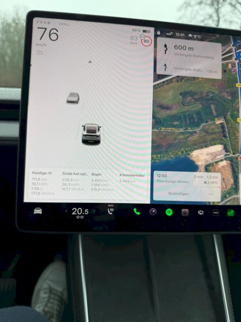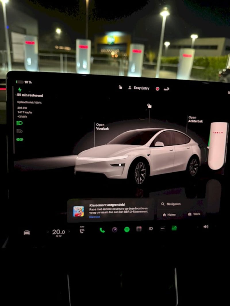 Pro tip: ik kies vaak bewust een Supercharger nét wat verderop om de batterij iets leger te rijden. Hoe leger de accu, hoe sneller hij laadt. Beetje strategisch laden dus. Het voelt bijna alsof je een level aan het optimaliseren bent.