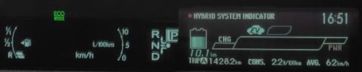 Wat blijft is dat ik redelijk zuinig rijd, op benzine sta ik op 1 liter op 23 km. 4,1 l/100km Als de elektrische km's er bij wordt gerekend kom ik op 1 liter per 33 km. 3,1 l/100 km Bij lange na niet de 2,1 l/100km