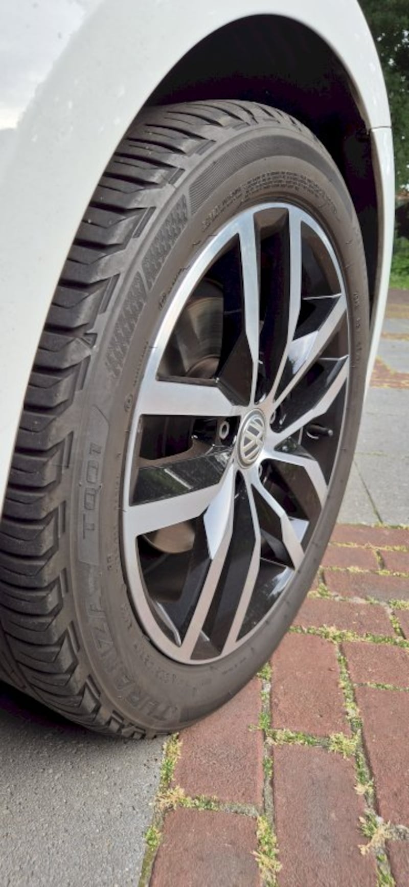 Omdat de banden af waren en beginnen te roffelen/ lawaai begonnen te maken, heb ik gezocht naar tweedehands velgen met goede a merk banden. Dat is gelukt en deze hebben de laatste 2 maanden van vorig jaar eronder gezeten, voordat de lelijke winterbanden/-velgen eronder gingen.